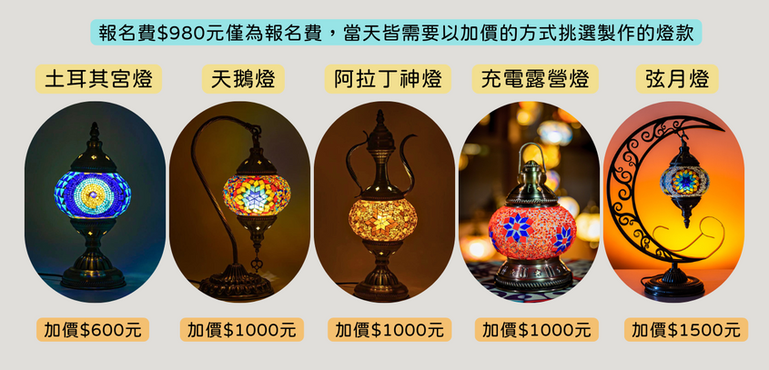 1. 報名費$980元僅為報名費,當天皆需要以加價的方式挑選製作的燈款